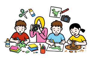 Teatro studijoje vaikai mokosi vaidinti ir kuria spektaklius.