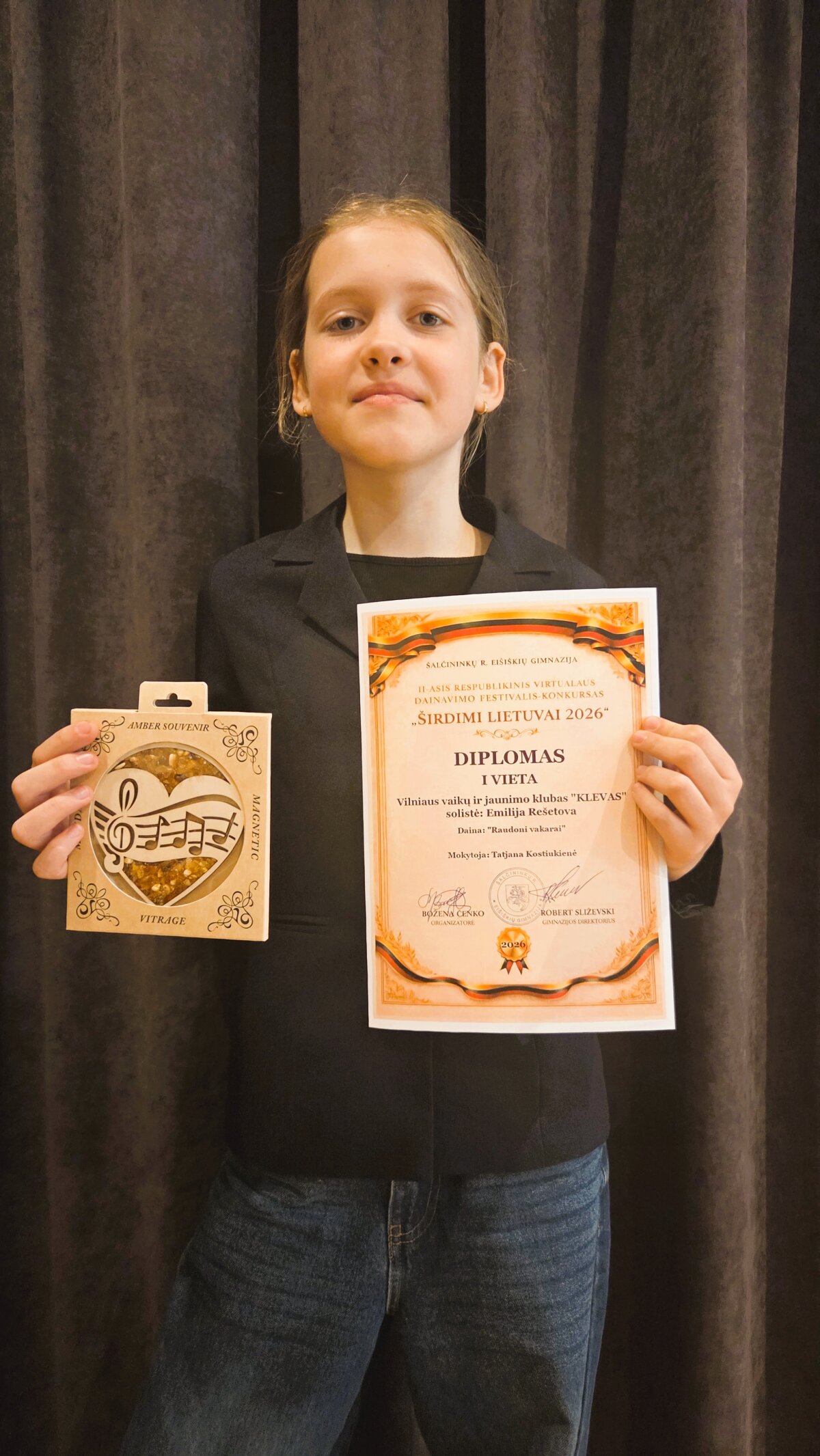 Didžiuojamės studijos „Smile“ dalyvių nuostabiais laimėjimais respublikiniame dainavimo konkurse! Dainavimo studijos „Smile“ dalyvės Esra ir Emilija dalyvavo II-ajame Respublikiniame dainavimo festivalyje-konkurse „Širdimi Lietuvai 2026“. Konkursą organizavo ir vykdė Eišiškių gimnazija, o jame savo talentus demonstravo mokiniai iš visos Lietuvos. Emilija atliko Ievos Narkutės dainą „Raudoni vakarai“. Savo amžiaus kategorijoje ji tapo laureate ir pelnė I-ą vietą. Esra atliko Ramintos Naujanytės-Bjelle dainą „Brolužis“. Ji tapo konkurso laureate ir savo amžiaus kategorijoje pelnė II-ą vietą. Didžiuojamės merginų talentu, darbu ir pasiekimais! Linkime dar daug gražių pergalių ir įkvėpimo muzikoje.